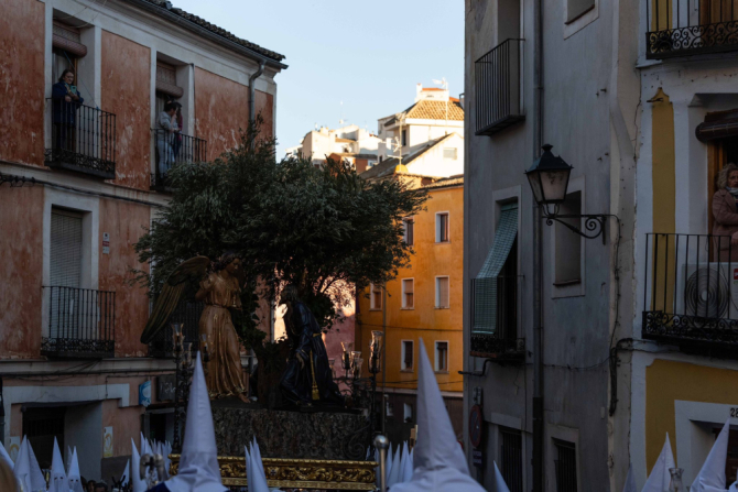 En la noche de la traición y los olivos, los tres pasos que convierten a Cuenca en Getsemaní evangélico llevaron ramas del que custodia el Cabildo en el claustro de la Catedral, propiedad del Huerto de San Esteban y procedente del Getsemaní físico. Los propios miembros del Cabildo catedralicio cortaron un ramillete para que pudieran portar los pasos entre sus ramas el símbolo.