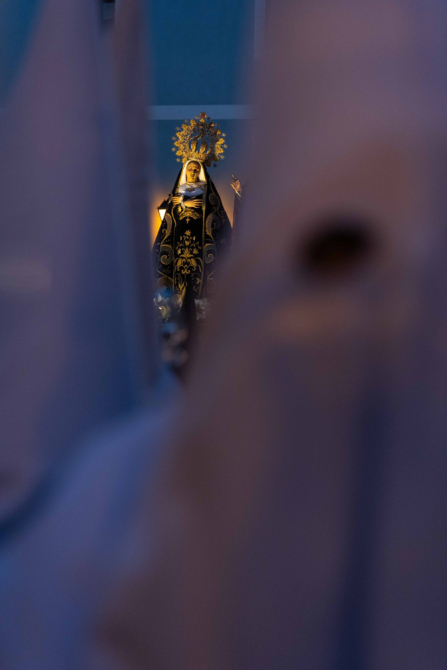 Ser uno con quien durante tantos años fue hermana de la Amargura, Laura Torres Botija, fallecida recientemente siendo número 9 de la Hermandad. Sus hijos, sus nietos y su yerno vistieron en este Silencio la túnica azul por ella; su hijo y su yerno le prestaron además el hombro a la Madre en desfile compartido, a modo de homenaje y recuerdo. Porque dicen que no muere nunca quien es recordado y ese recuerdo es eterno y colectivo si ha sido de Cuenca nazareno.